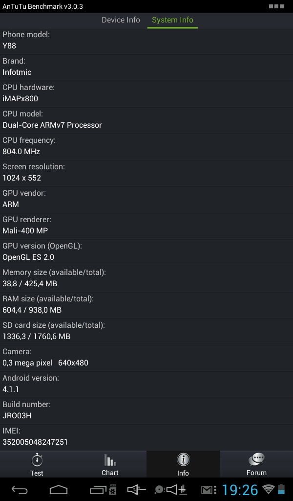Para tener una fuente fiable de información del sistema, he obtenido información desde el mismo dispositivo, ya sea desde la misma información que me proporciona el sistema Android (que generalmente es mas bien escueta), como utilizando otros programas que logran sacar mucho mas información, y de forma mas detallada, con lo que nos podemos hacer una idea general del dispositivo en su conjunto.